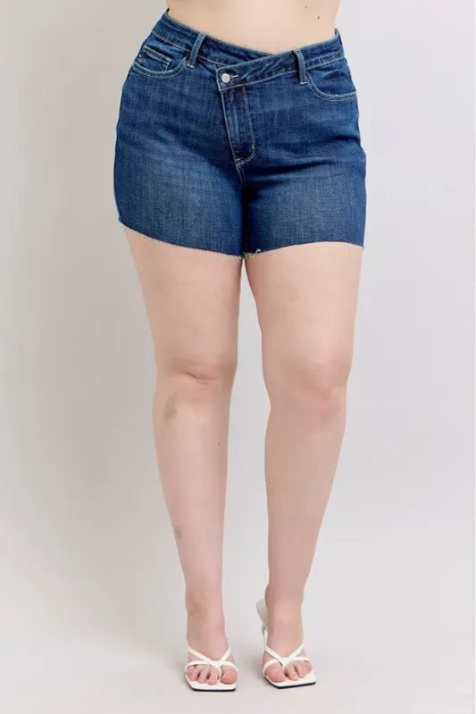 Judy Blue High Waist Criss-Cross Waistband Denim Shorts-Plus