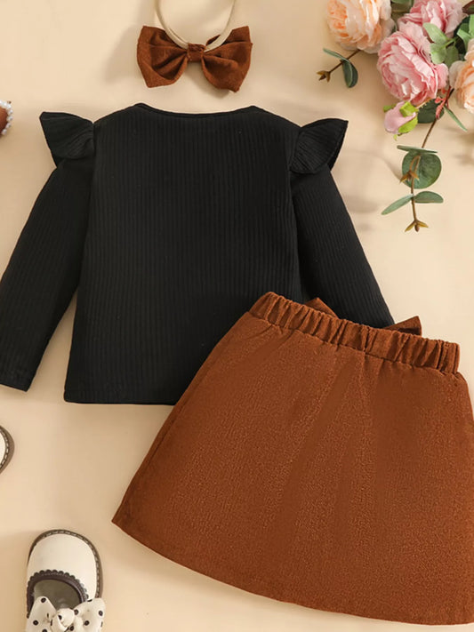 Baby/Toddler Ribbed Knit Top and Bowknot Skirt Set with Headband