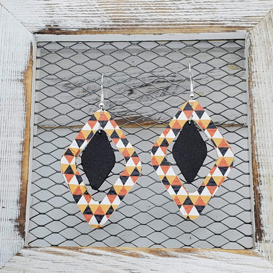 Pumpkin w/Buffalo Plaid Leather Earrings