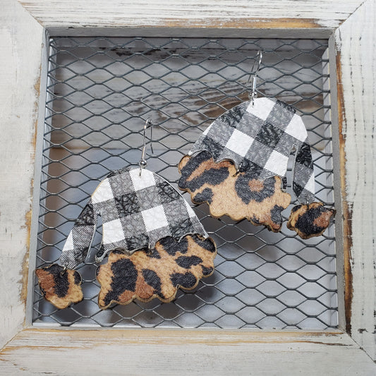Leopard and Buffalo Plaid Pumpkin Earrings