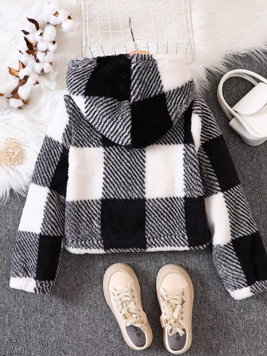 Children's Cozy Plaid Sleeve Fleece Jacket