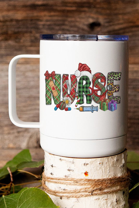 Christmas Nurse Doodle Coffee Travel Mug Cup