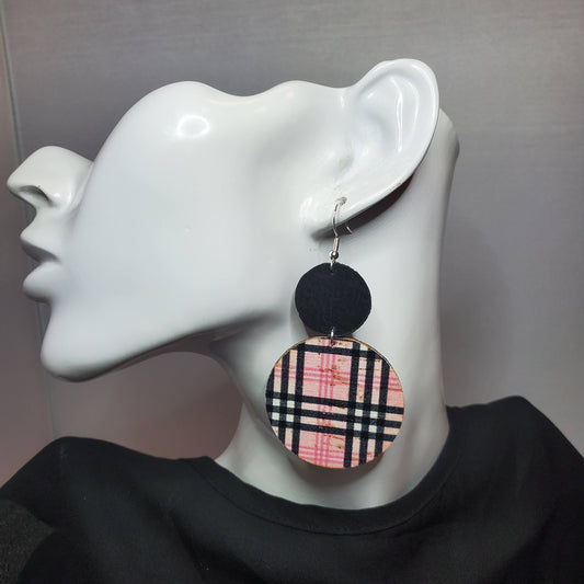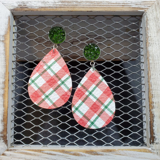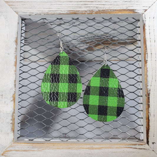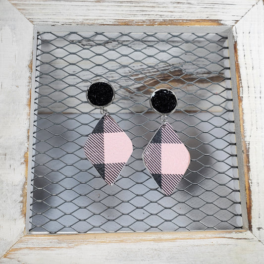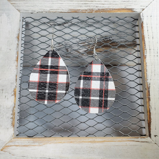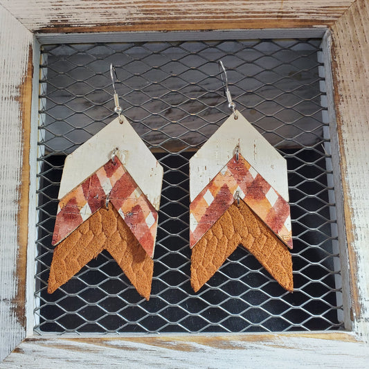 Pumpkin w/Buffalo Plaid Leather Earrings