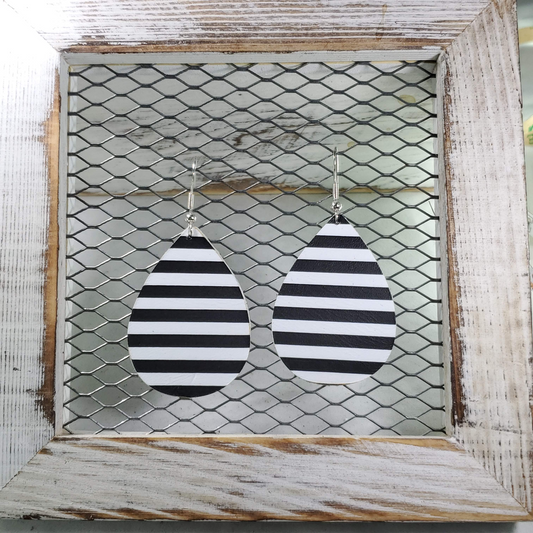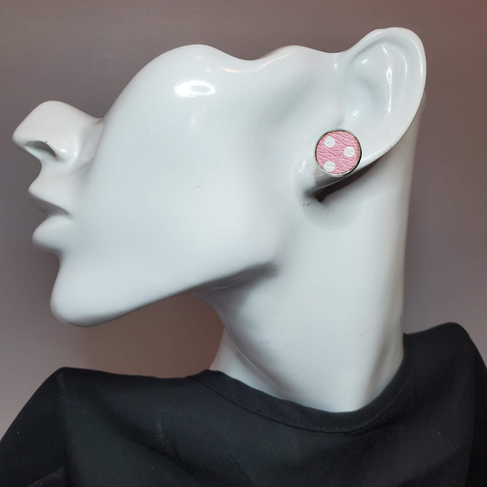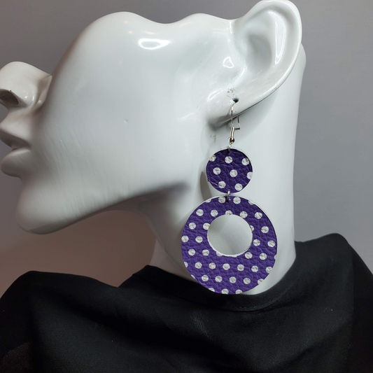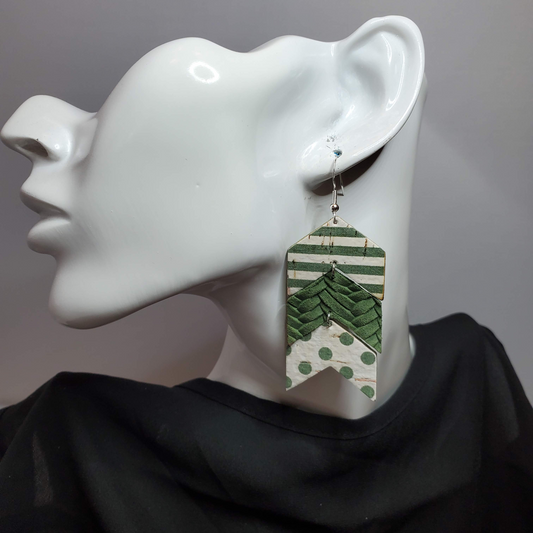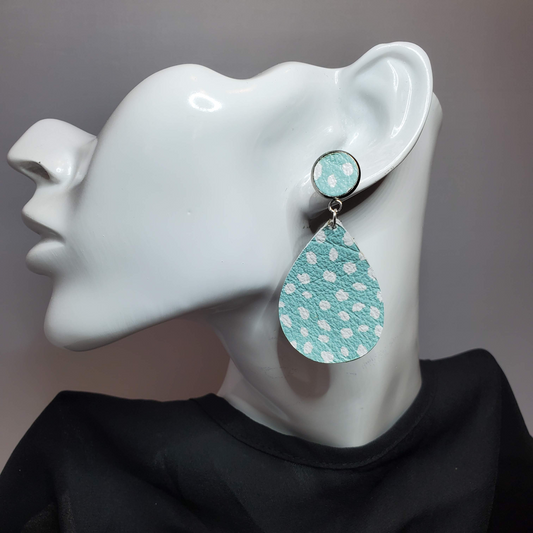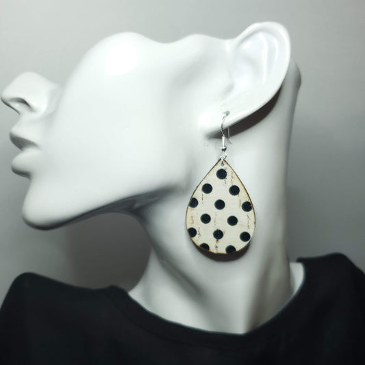 Vintage White w/Black Polka Dot Cork/Leather Earrings