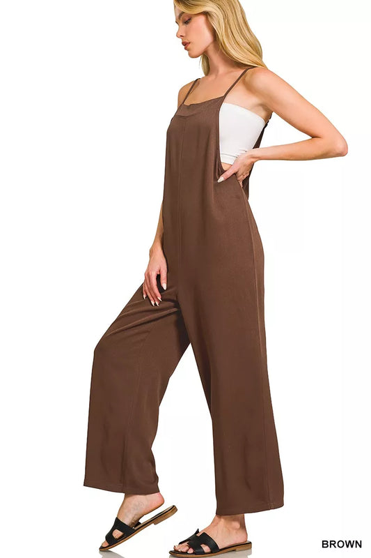 Zenana Spaghetti Strap Wide Leg Overalls with Pockets