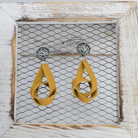 Pumpkin w/Buffalo Plaid Leather Earrings