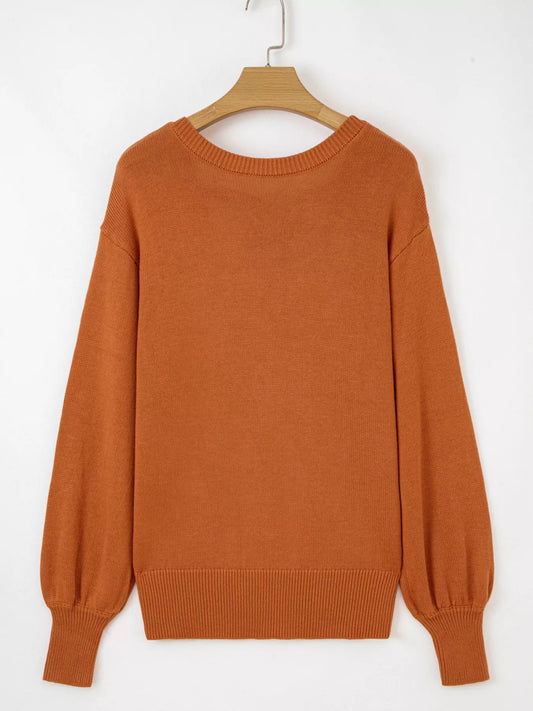 Solid Color Ribbed Trim Drop Shoulder Sweater