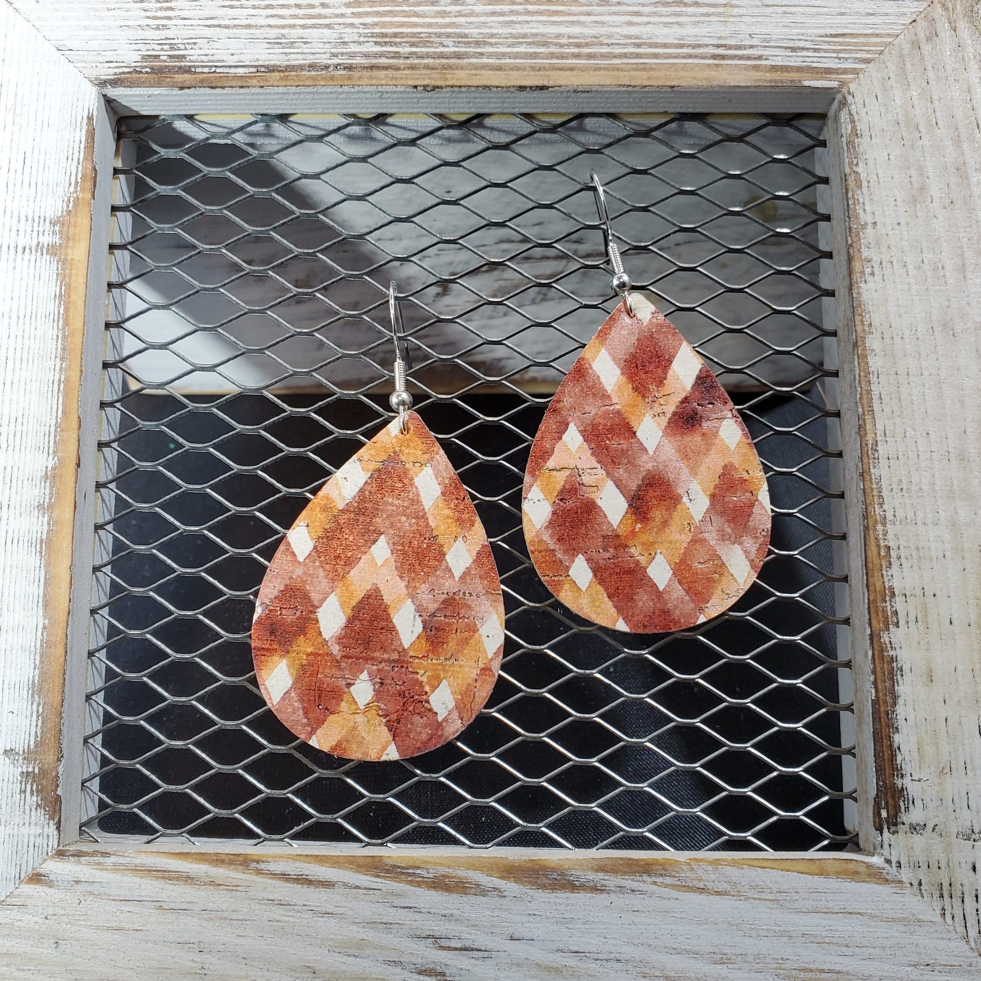 - 2" Autumn Cinnamon Plaid Cork/Leather Teardrops