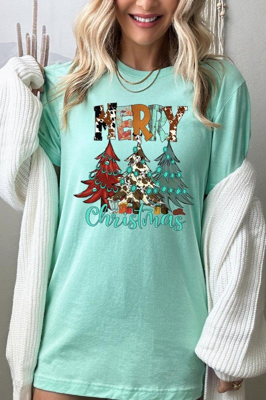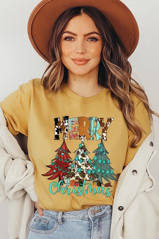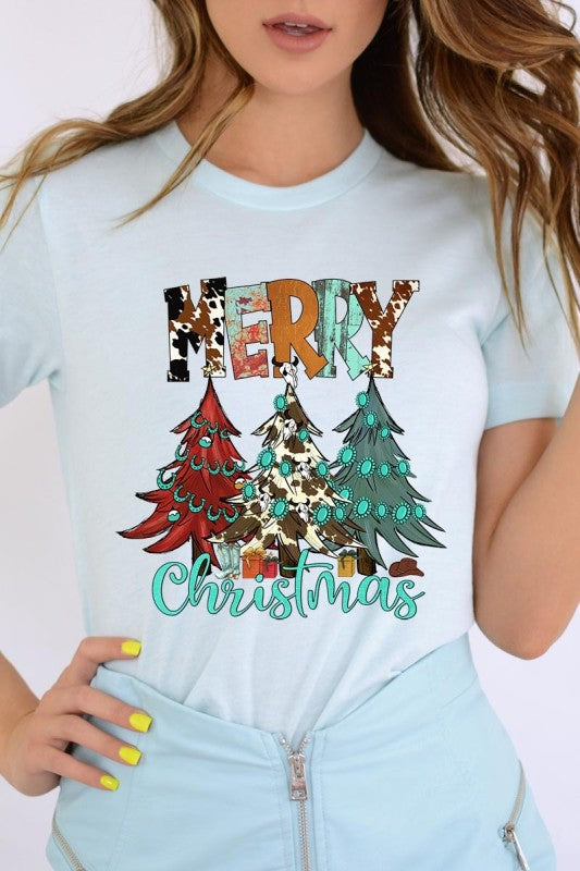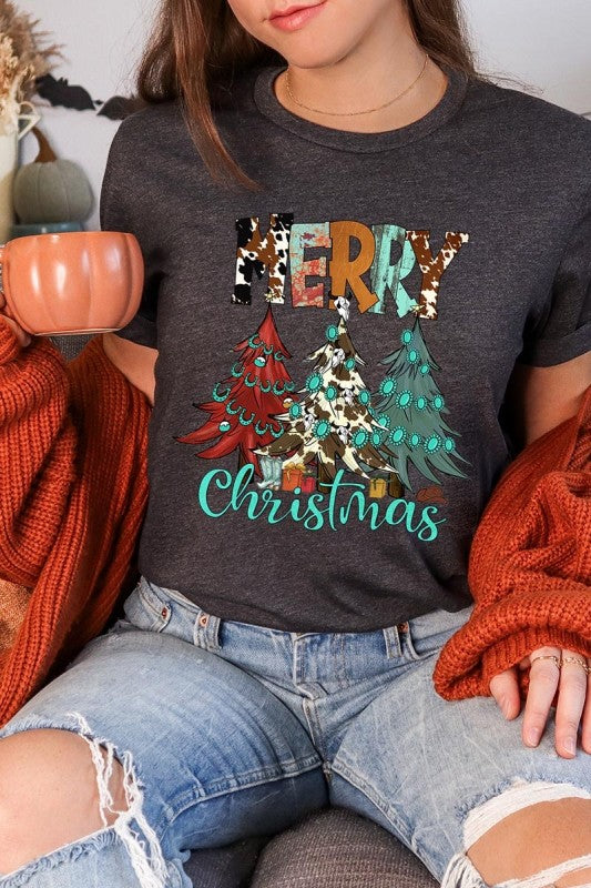 merry christmas trees shirt, rustic christmas tree tee, western christmas top, farmhouse holiday shirt, christmas plaid tree graphic tee, country christmas Graphic Tee.