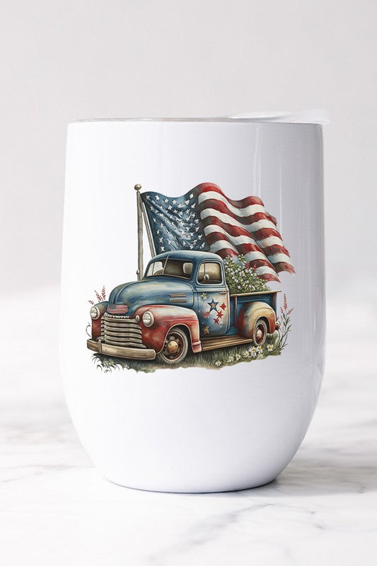 12 oz Stainless Steel Wine Tumbler. Image printed on both sides. Includes lid and plastic straw. Double wall vacuum insulation.