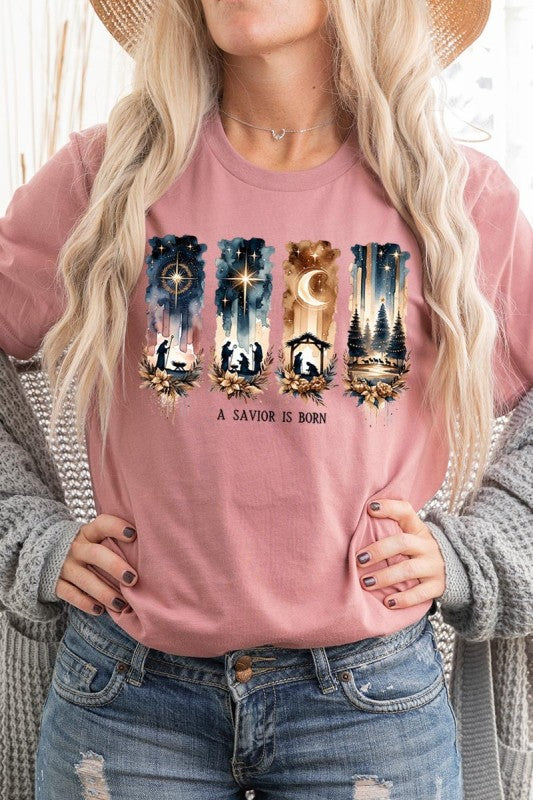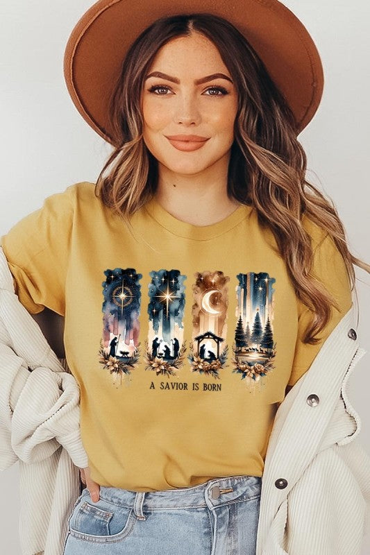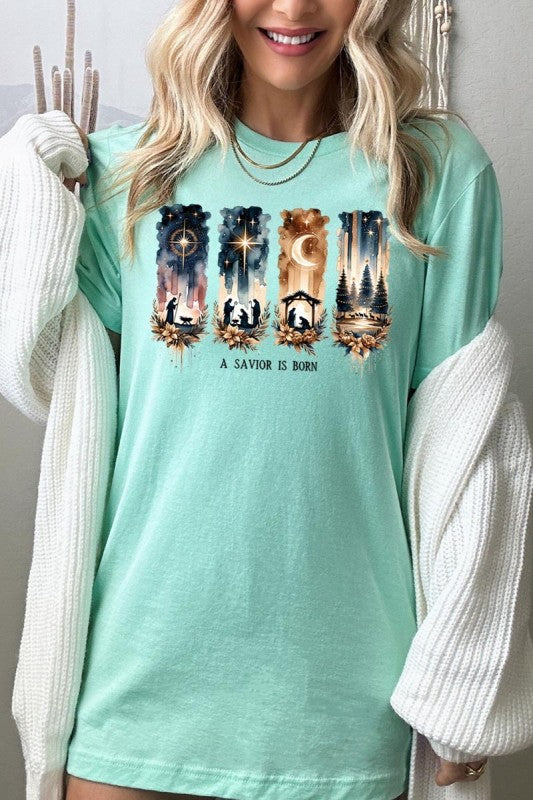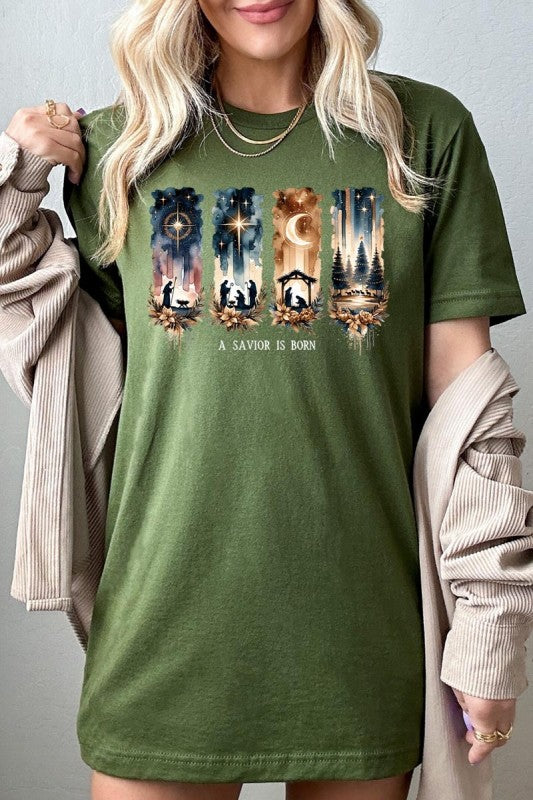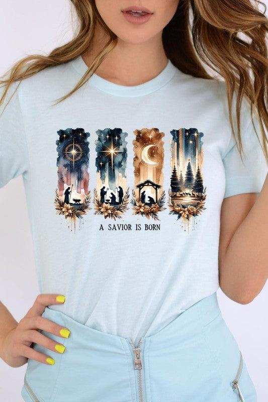 savior is born shirt, nativity scene tee, christian christmas top, religious faith shirt, bible verse tee, jesus birth shirt, christmas graphic tee, holiday faith Graphic Tee.